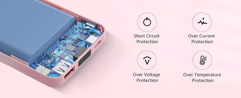 • Superior Safety: This portable power bank built-in low-temperature ice cores and smart chip, it includes temperature control, overcharge protection, short circuit protection,etc., and the travel charger uses soft silicone material to protect your phone from damage while wireless charging.